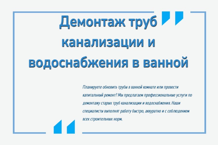 Планируете обновить трубы в ванной комнате или провести капитальный ремонт? Мы предлагаем профессиональные услуги по демонтажу старых труб канализации и водоснабжения. Наши специалисты выполнят работу быстро, аккуратно и с соблюдением всех строительных норм.